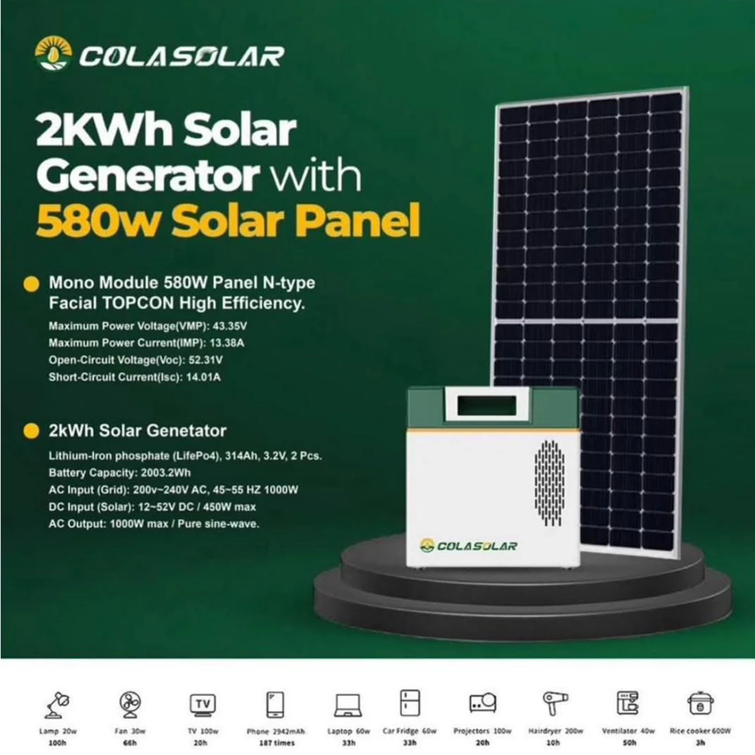COLASOLAR 2Kwh Solar Generator with 580W Solar Panel